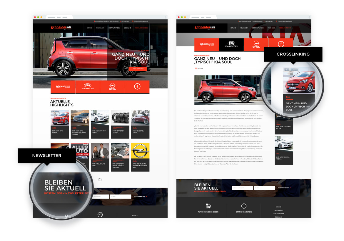 Um Aktualität zu gewähren, wurde eigens für das Autohaus ein Online Magazin konzepiert. Verstaubte Newsbereiche "Bye Bye Baby!" - Freshy Magstyle "High Five!"